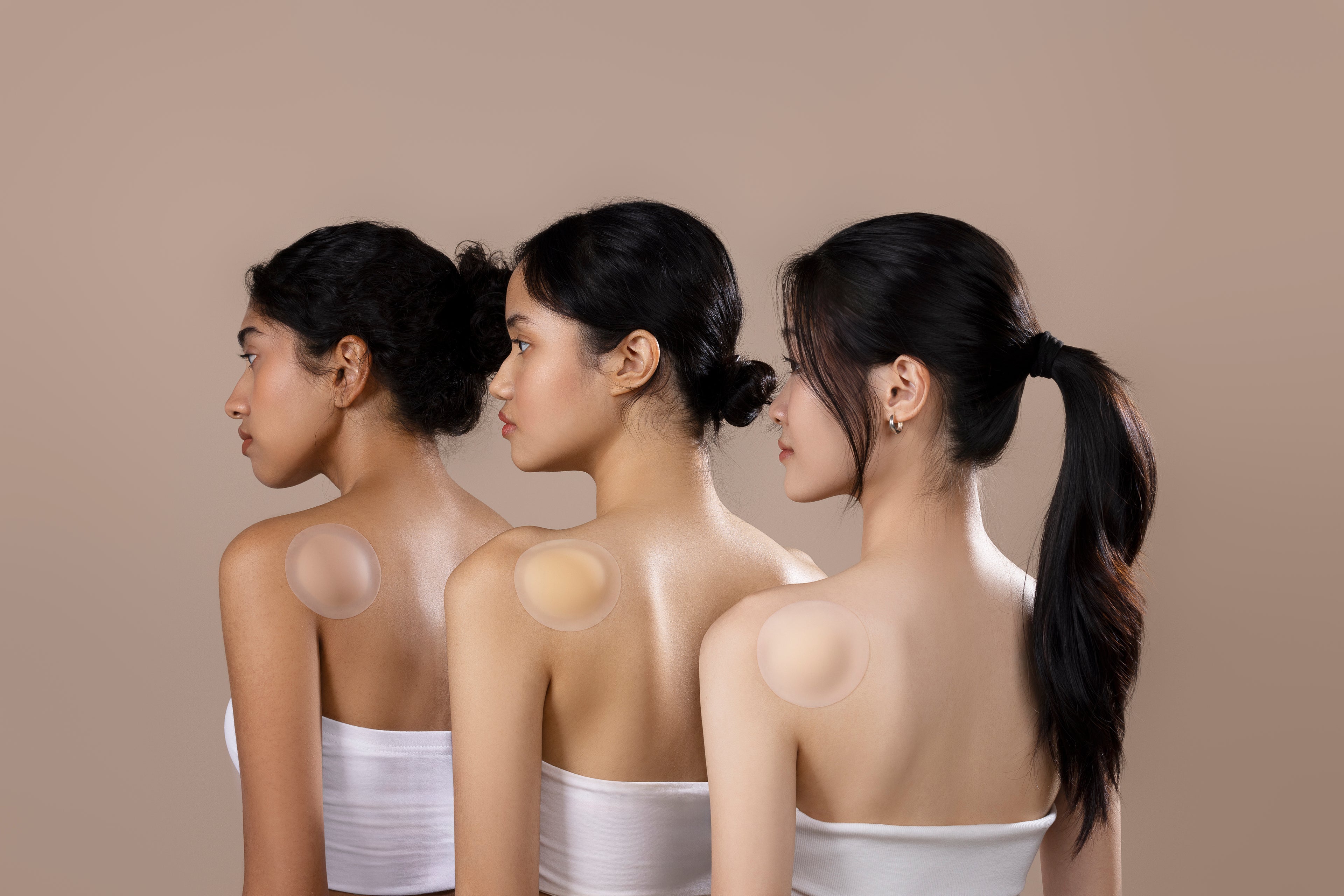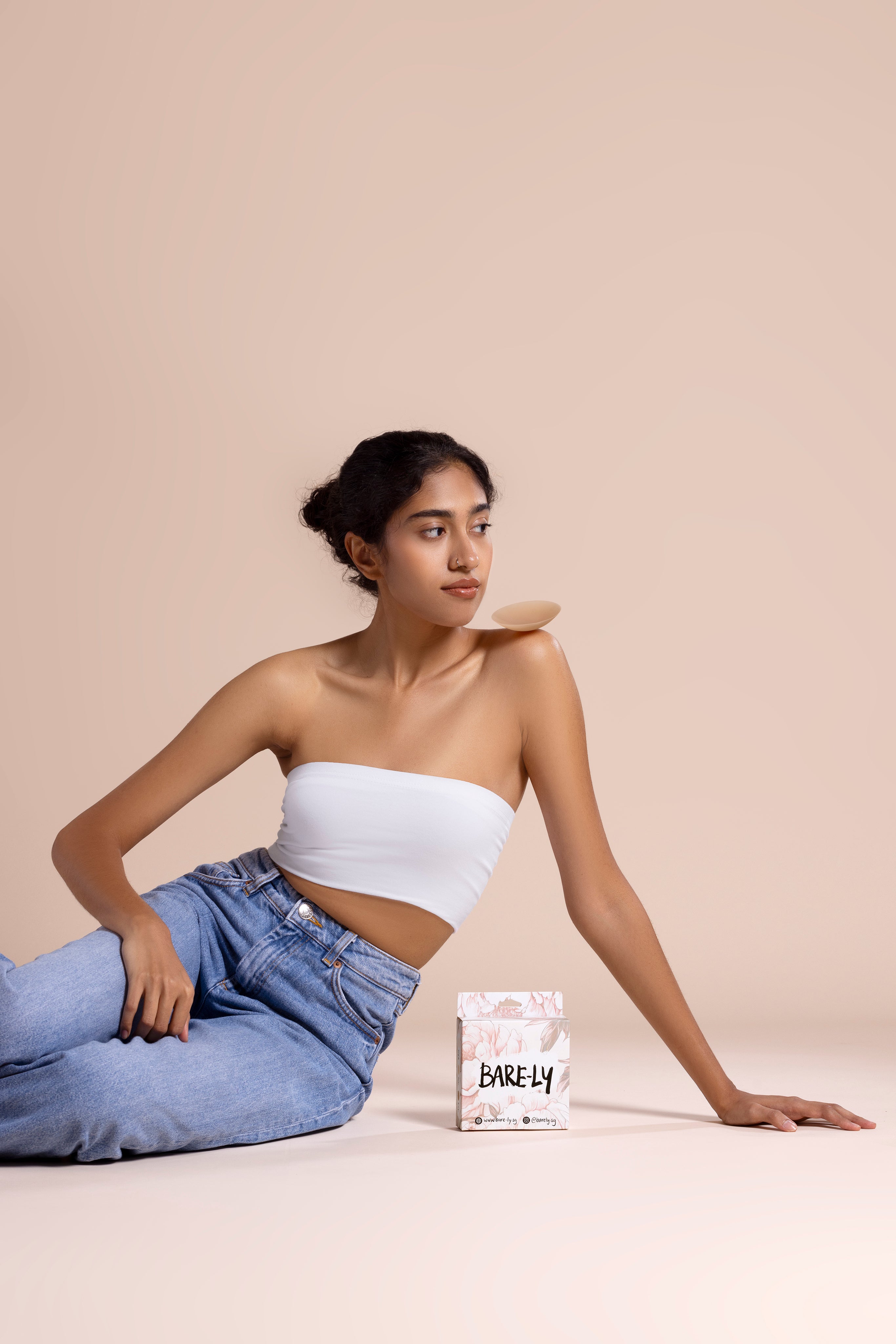 Bare-ly is adhesive-free, not sticky, and doesn't use any irritating adhesives. Bare-ly will stay in place under any form fitting top!