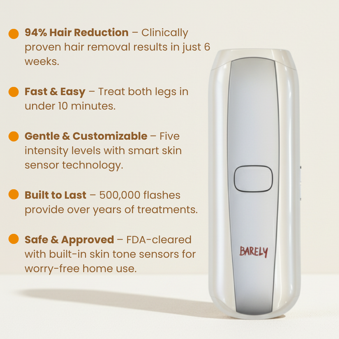 Barely IPL treatments are virtually pain-free. You may feel a warm sensation during use. but it is far more comfortable compared to waxing or epilating.